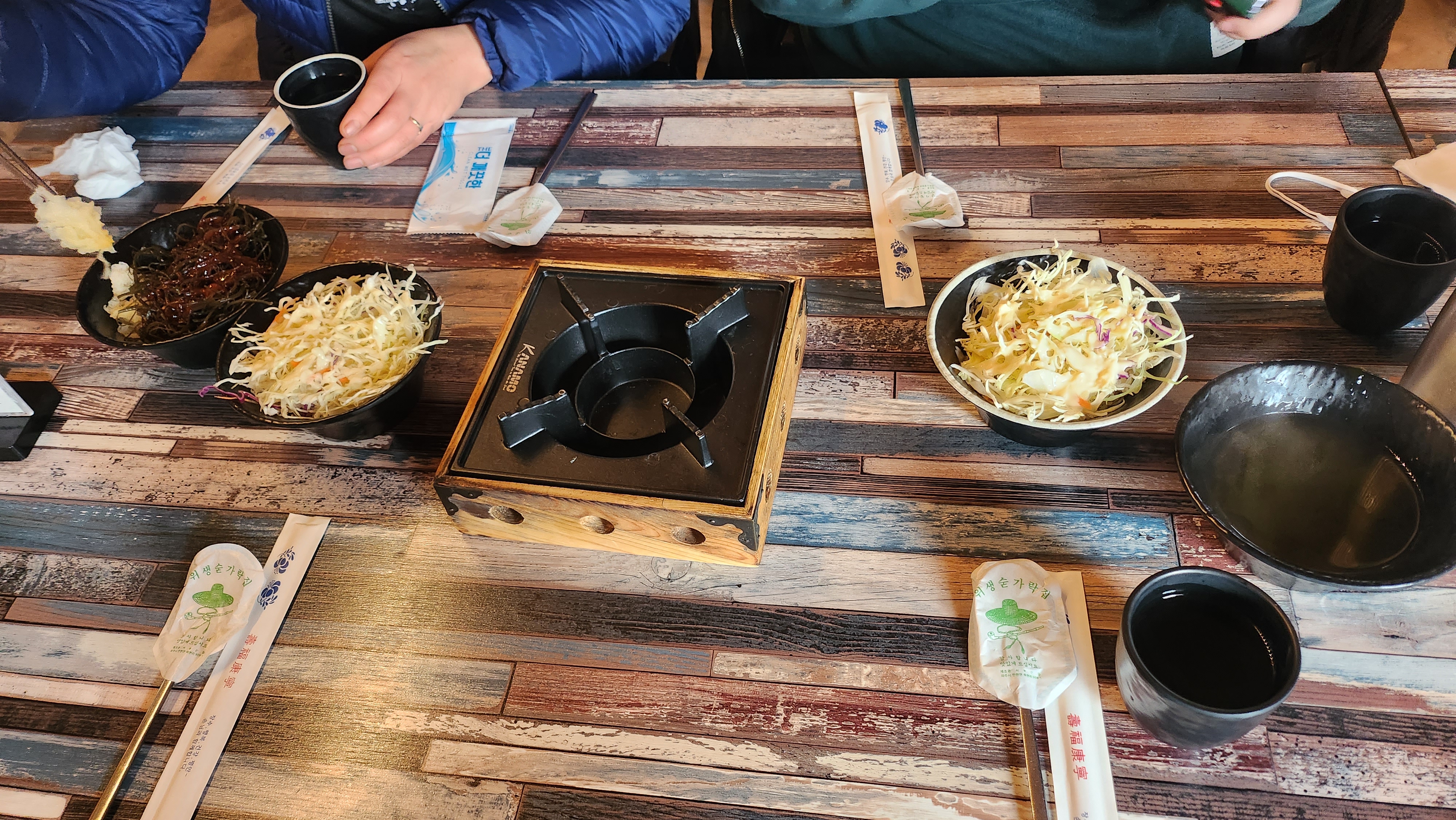 기본 세팅은 이렇고 샐러드와 해초, 미역국은 샐러드바에서 가져와 먹었습니다.