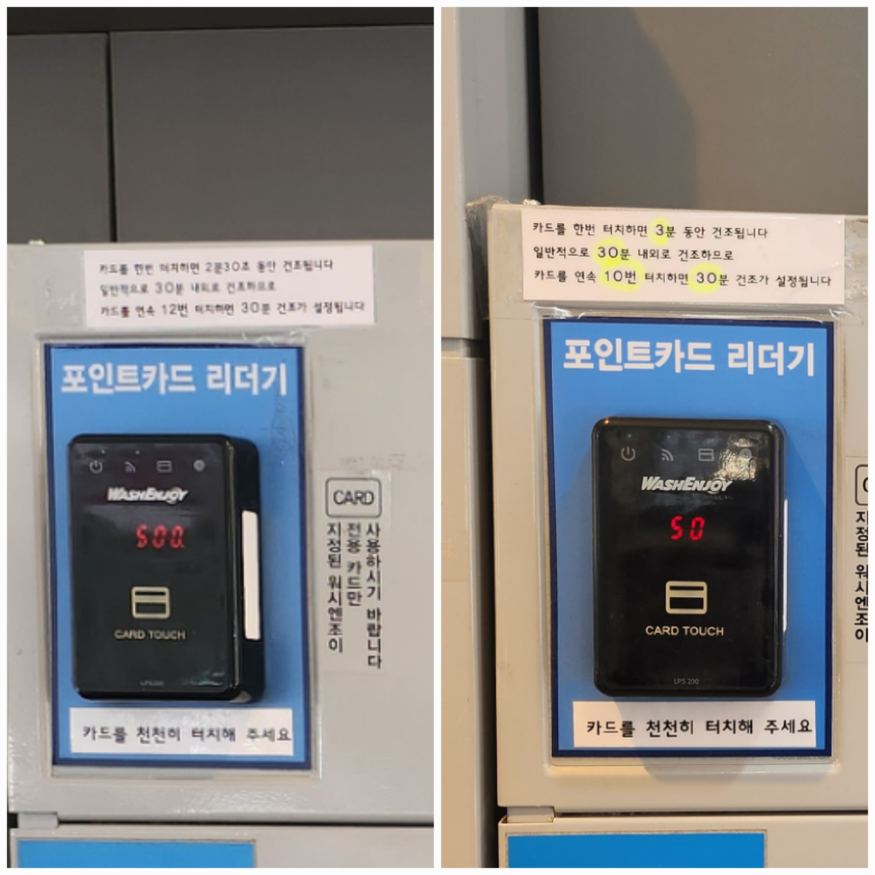 왼쪽 30kg 초대형건조기 500원 2분 30초